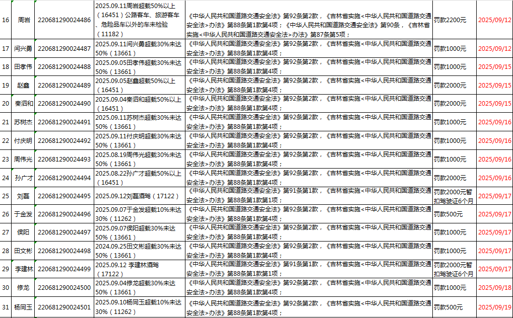 | 临江市公安局交通管理大队2025年9月(2)行政处罚 |