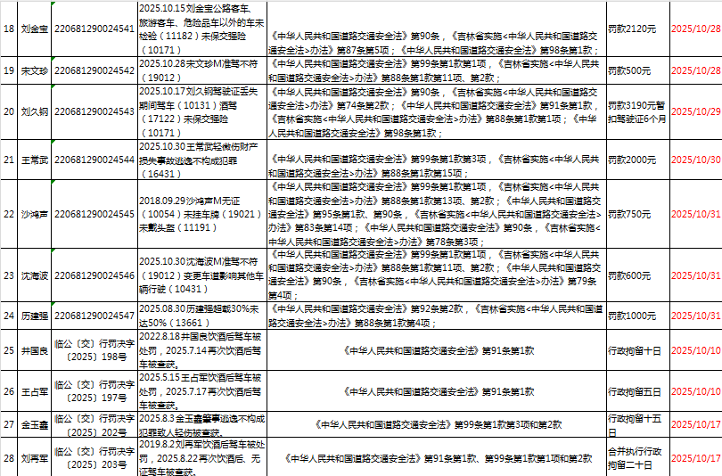 | 临江市公安局交通管理大队2025年10月(2)行政处罚 |