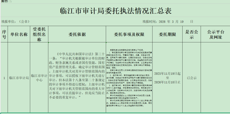 临江市审计局委托执法情况汇总表