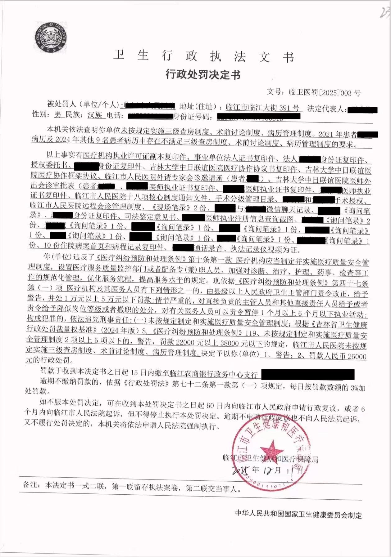行政处罚决定书 文号:临卫医罚【2025】003号