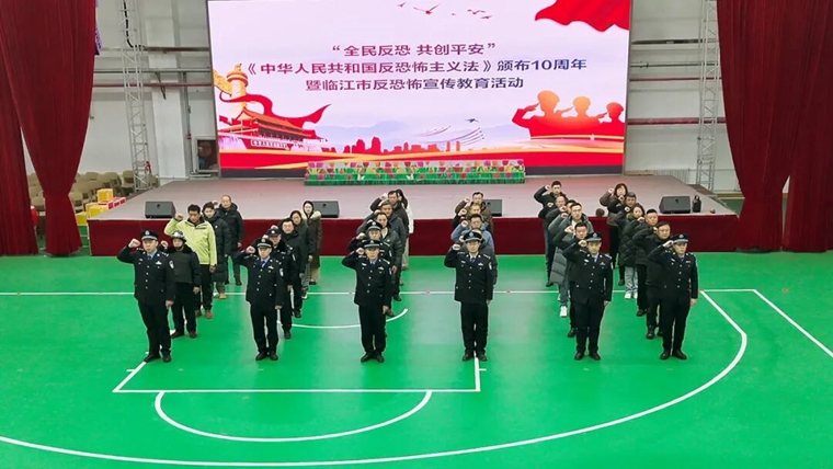 近日,临江市公安局组织开展反恐怖宣传教育活动启动仪式。临江市公安局、临江森林公安分局、市教育局、四保临江战役纪念馆、市人民医院等各反恐成员单位代表30余人共同见证活动启动,凝聚全民反恐共识。